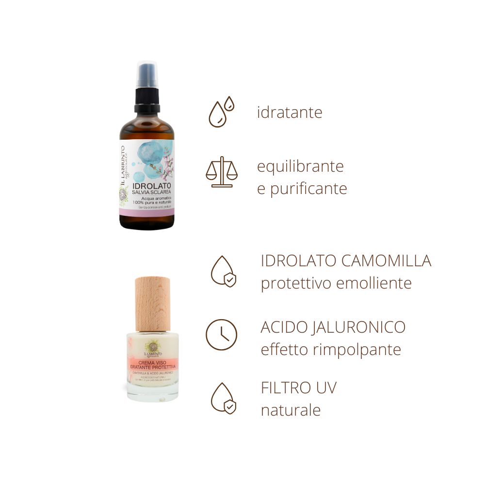 1 IDROLATO DI SALVIA SCLAREA* 100% puro e naturale: qui proposto come tonico per la pelle dall'effetto equilibrante, idratante e antiossidante.